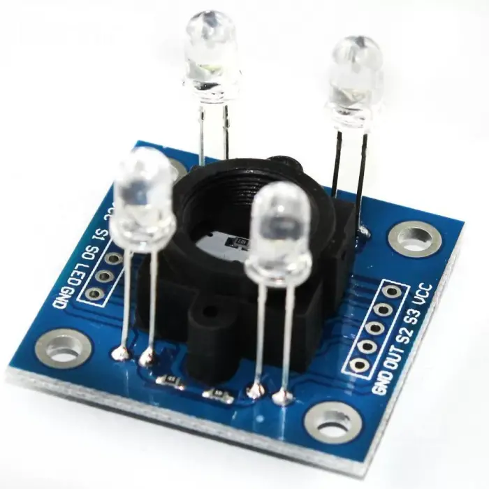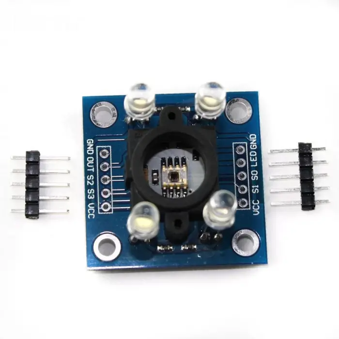 TCS3200 Renk Sensörü üzerinde, TAOS TCS3200 sensör çipi bulunmaktadır. TCS3200 ile tüm rengeleri algılayabilecek kadar başarı sağlayabilirsiniz. Dış etkenlerden etkilenmemesi için sensor etrafında plastik bir muhafaza vardır.